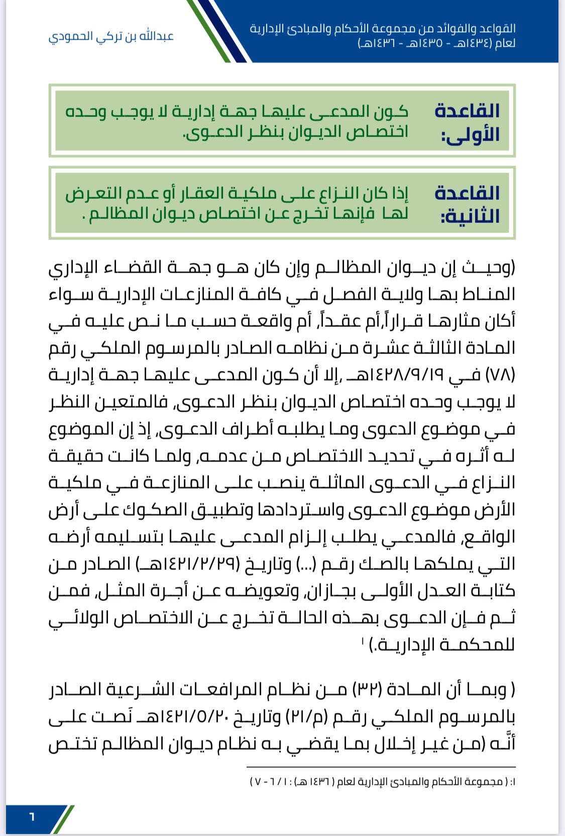 ديوان المظالم المدونات القضائية. مجموعة الأحكام القضائية لعام 1435 هــ آلية ومتطلبات تسجيل الملكية العقارية آخر تعديل. القضاء الإداري ديوان المظالم. إبراهيم بن ناصر الحمود. مجموعة الأحكام والمبادئ الجزائية ديوان المظالم.