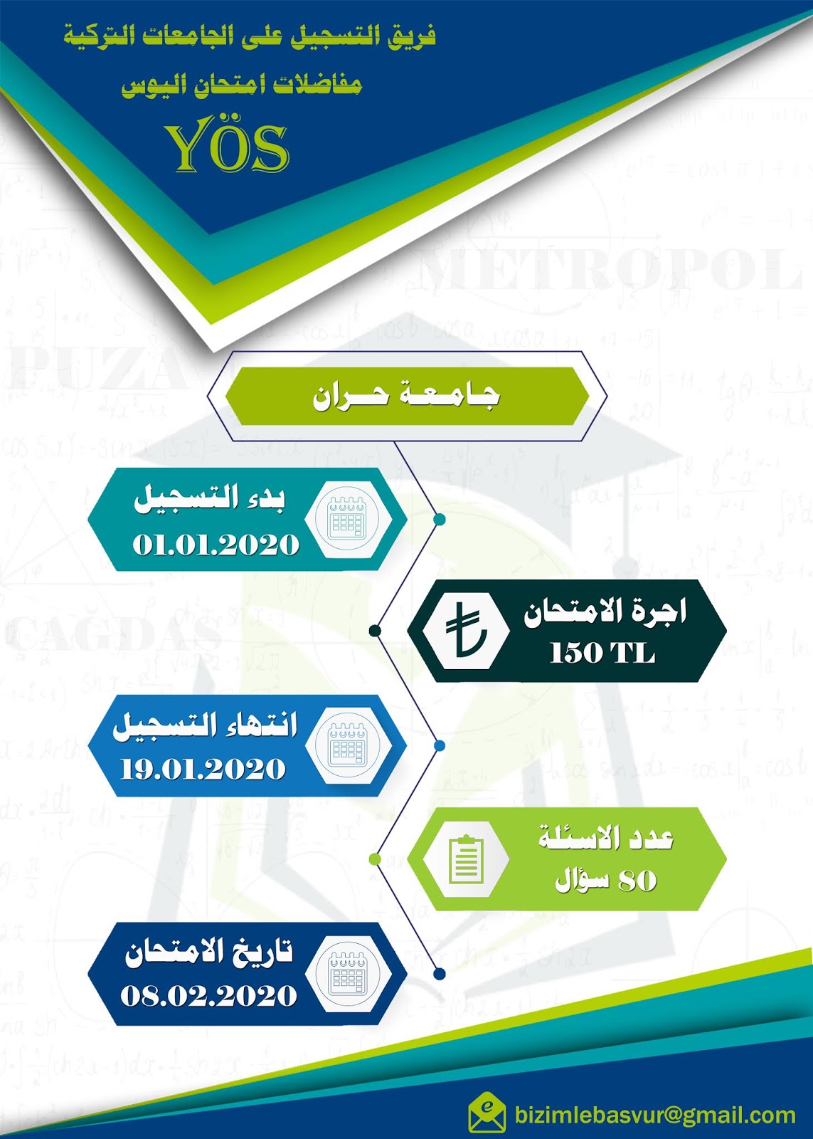 جامعة حران Harran Universitesi المفاضلة على امتحان اليوس 2020 2021