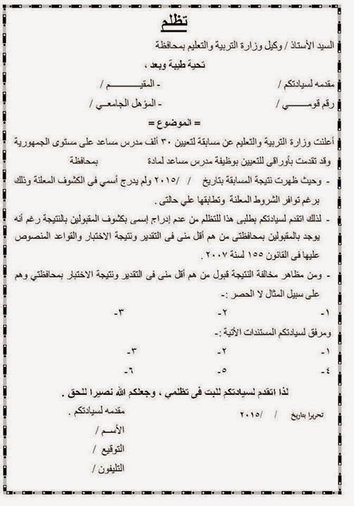 شكوى وتظل م إلى وزير التربية والتعليم العالي