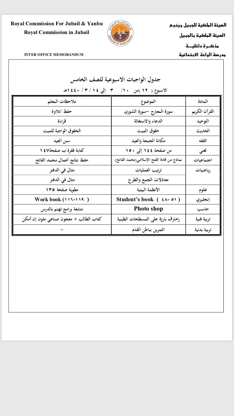مدرسة الواحة الابتدائية On Twitter النشاط البيتي المواضيع والواجبات للأسبوع الـ ١٢ من ١٠ ١٤ ٣ ١٤٤٠هـ للصف الرابع والخامس والسادس مدرسة الواحة الابتدائية بـ الهيئة الملكية بالجبيل Https T Co E6deyt39ct