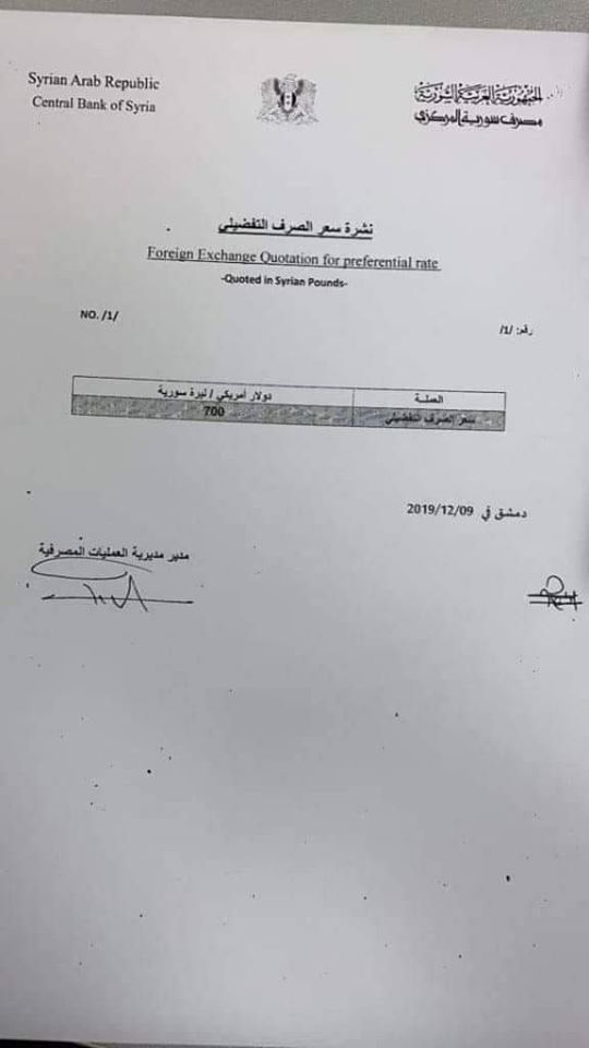 المركزي يقفز بسعر الدولار التفضيلي إلى 700 ليرة اقتصاد مال و اعمال السوريين