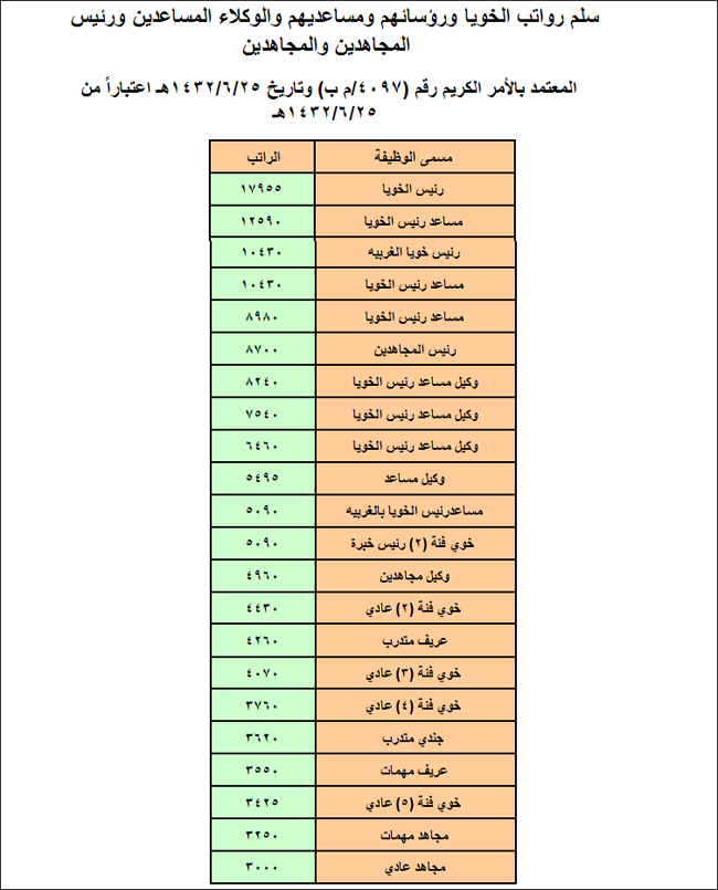 سلم رواتب الأئمة والمؤذنين الجديد
