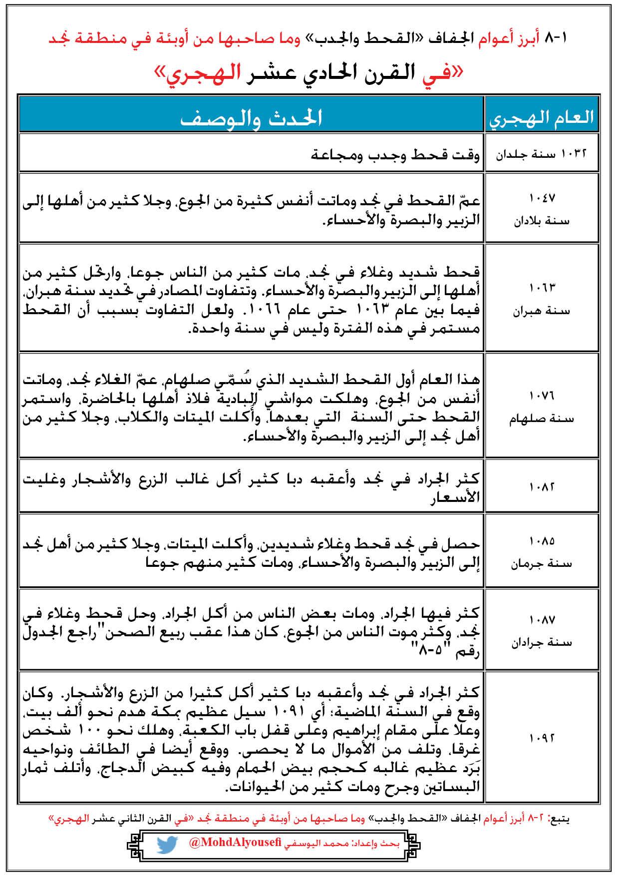 محمد اليوسفي A Twitter سنين قحط في نجد ١٠٣٢هـ سنة جلدان ١٠٤٧ بلادان ١٠٦٣هبران ١٠٧٦صلهام ١٠٨٥جرمان ١٠٨٧جرادان تفصيل عن القرن١١ في جدول ١ ٨ Http T Co M6e6zdlga6