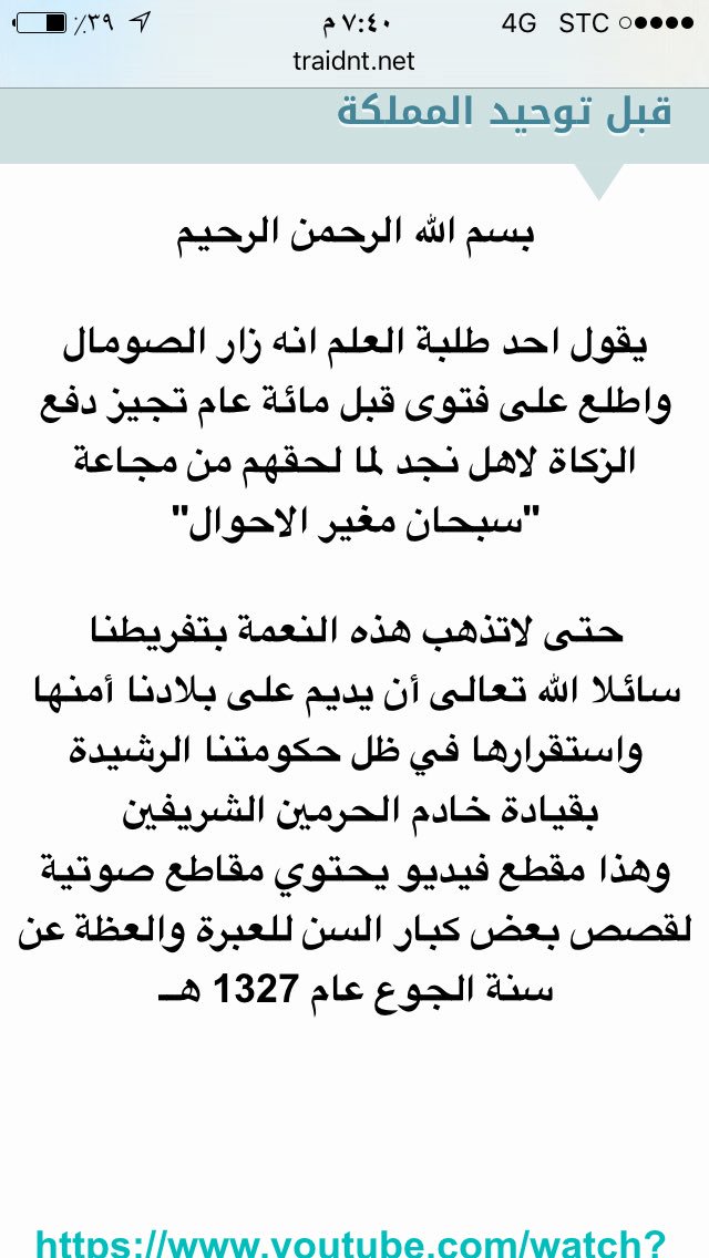ناصر الدويش Pa Twitter سيلفي سنة الجوع كانت عام 1327 وكانو اهل نجد وقتها يقبلون الزكاه نحن الان في نعمه تبي حمد وشكر