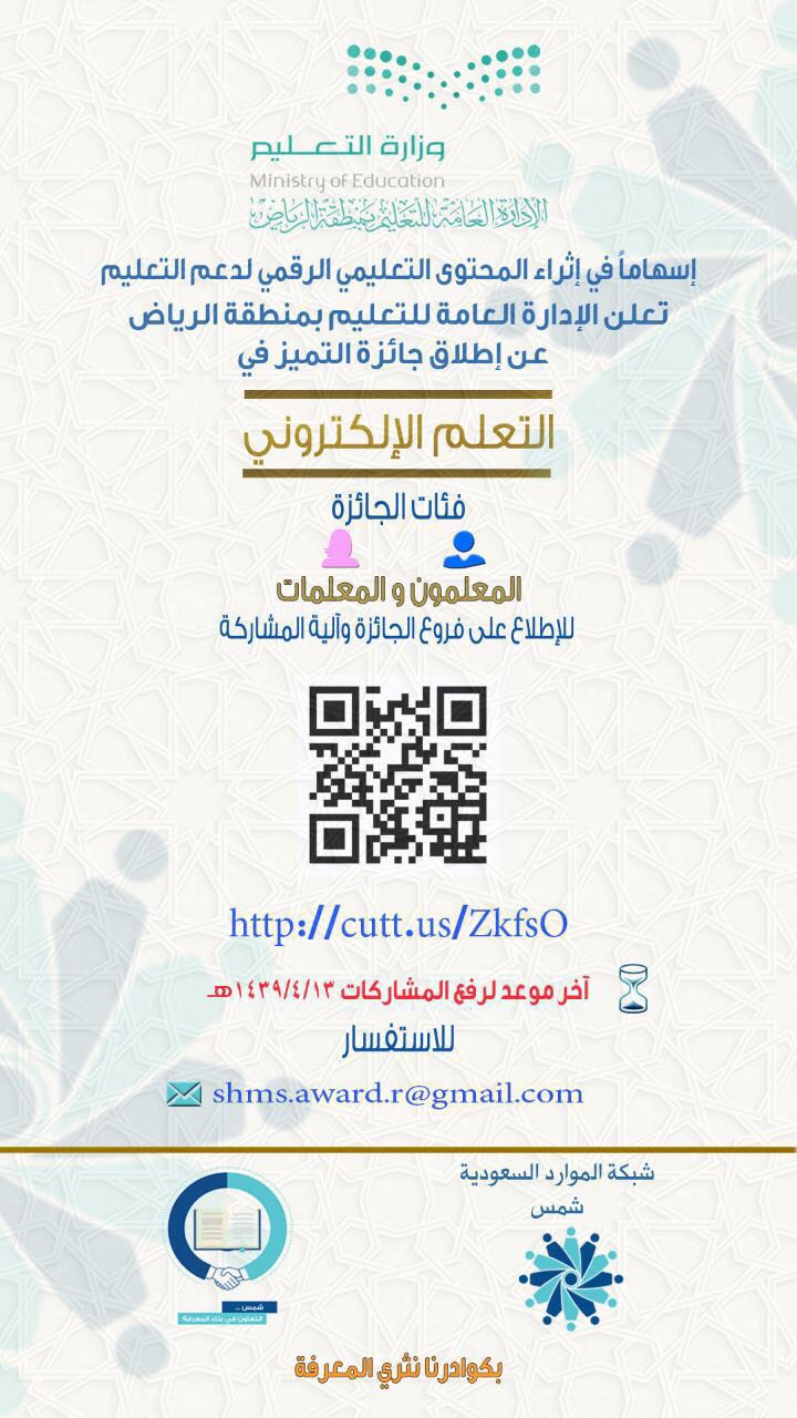 المركز الوطني للتعليم الإلكتروني On Twitter إسهاما في إثراء المحتوى التعليمي الرقمي تعليم الرياض تطلق جائزة التميز في التعلم الإلكتروني
